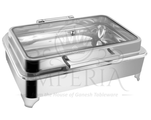 Rect S.S Hyd Chafer W/E.E frame Lid R/G Full Glass | Capacity- 10L