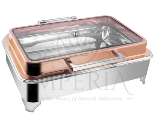 Sqr S.S Hyd Chafer W/E.E frame Lid R/G Full Glass | Capacity- 7L