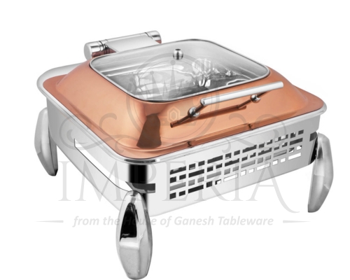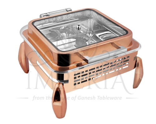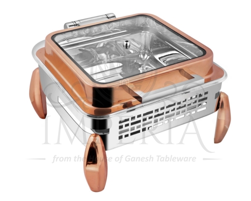 Sq S.S Hyd Lazercut Chafer W/Diamond leg R/G Full Glass | Capacity- 7L