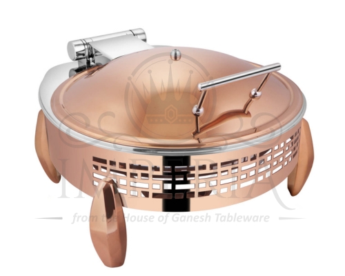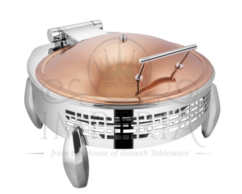Round S.S Hyd Lazercut Chafer W/Diamond leg R/G Half glass | Capacity- 7L