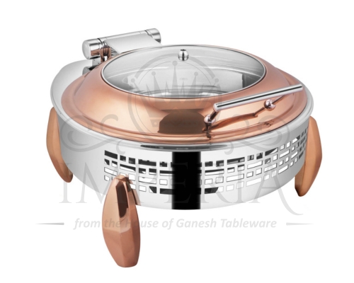Round S.S Hyd Lazercut Chafer W/Diamond leg R/G Full Glass | Capacity- 7L