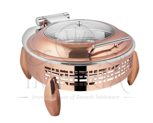 Round S.S Hyd Lazercut Chafer W/Diamond leg Leg & lid R/G Half Glass | Capacity- 7L