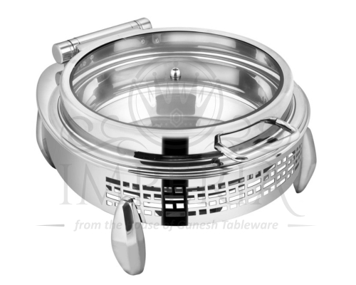 Round S.S Hyd Lazercut Chafer W/Diamond leg Full glass | Capacity- 7L