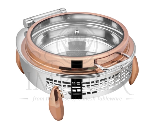 Round S.S Hyd Lazercut Chafer W/Diamond leg lid R/G Full Glass | Capacity- 7L