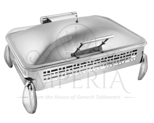 Rect S.S Hyd Lazercut Chafer W/Diamond leg Half Glass | Capacity- 10L