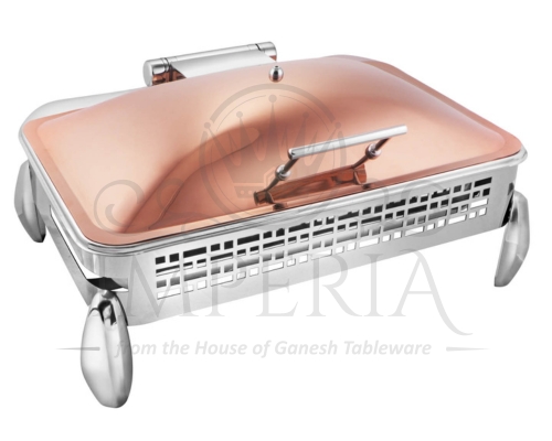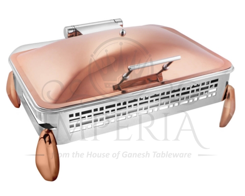 Rect S.S Hyd Lazercut Chafer W/Diamond leg Leg & lid R/G Half Glass | Capacity- 10L
