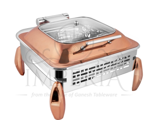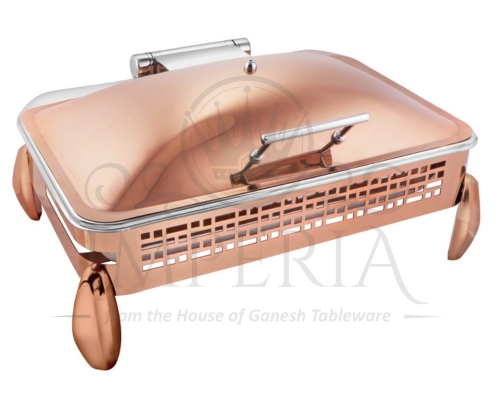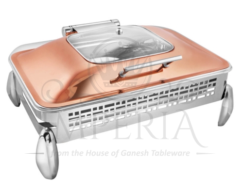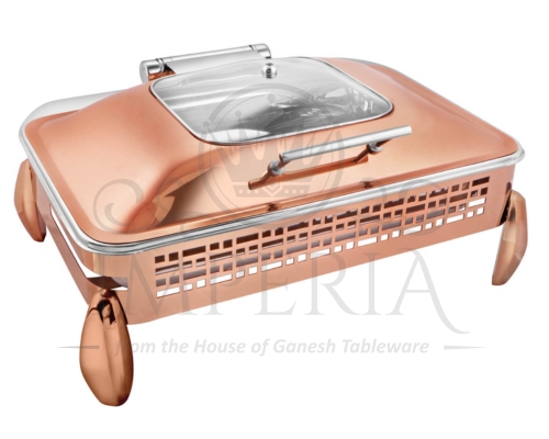Rect S.S HydLazercut Half glass Chafer Full R/G W/Diamond leg | Capacity- 10L