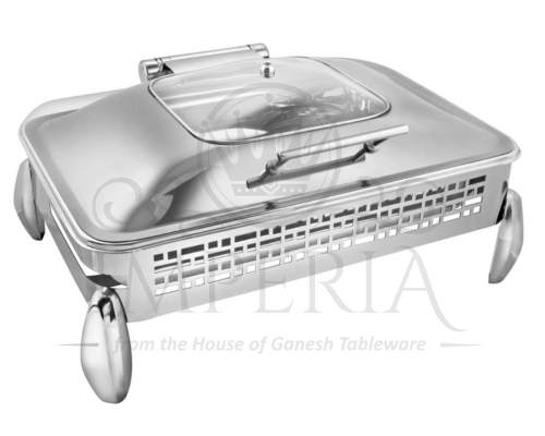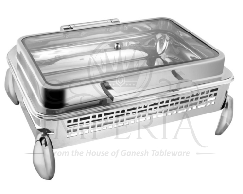 Rect S.S Hyd Lazercut Chafer W/Diamond leg Full glass | Capacity-10L