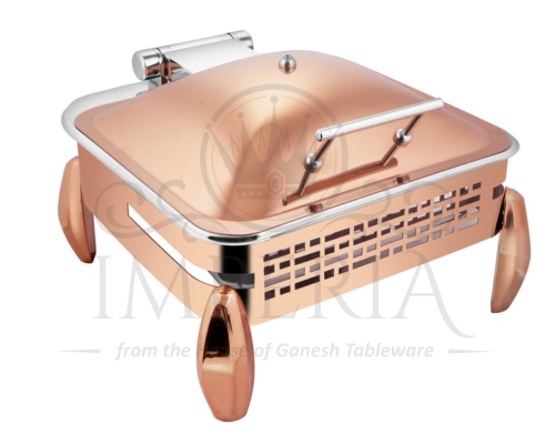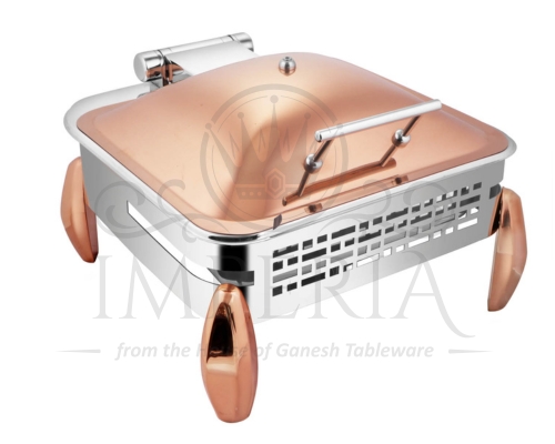 Sq S.S Hyd Lazercut Chafer W/Diamond leg Leg & lid R/G Half Glass | Capacity- 7L