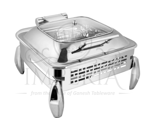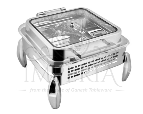 Sq S.S Hyd Lazercut Chafer W/Diamond leg Full glass | Capacity- 7L